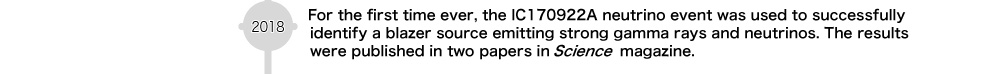 Our team from Chiba University is the only Japanese institution participating in the project. We have been involved in the project since the IceCube collaboration was launched in 2002, and played an important role in researching the most famous neutrino events and in identifying neutrino sources.